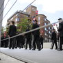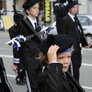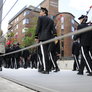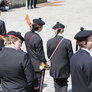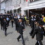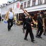 "Lørdagskorpsenes Fellestur til Århus" blev et tilløbsstykke, da en stor flok sortklædte drenge med armbryst og gevær, under tromme rytmer marcherede gennem byen og ned til Bispetorv, hvor de gav opvisning i eksersits.