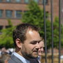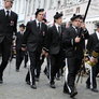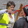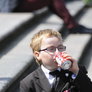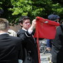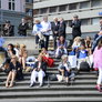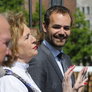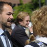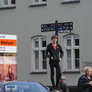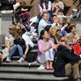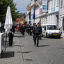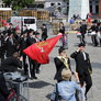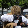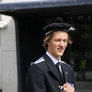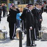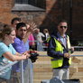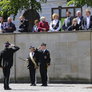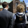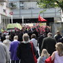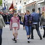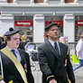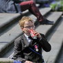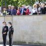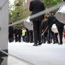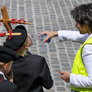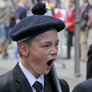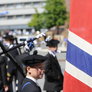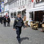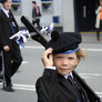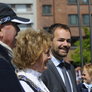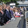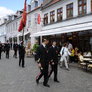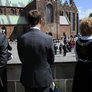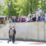 Vagtskiftet ved Marselisborg Slot skærtorsdag kl. 12 tiltrak mange fremmødte, mens politiets indsatsleder undervejs tog sig tid til at besvare spørgsmål fra en nysgerrig dreng.