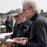 Vagtskiftet ved Marselisborg Slot skærtorsdag kl. 12 tiltrak mange fremmødte, mens politiets indsatsleder undervejs tog sig tid til at besvare spørgsmål fra en nysgerrig dreng.