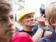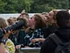 Vagtskiftet ved Marselisborg Slot skærtorsdag kl. 12 tiltrak mange fremmødte, mens politiets indsatsleder undervejs tog sig tid til at besvare spørgsmål fra en nysgerrig dreng.