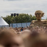 Vagtskiftet ved Marselisborg Slot skærtorsdag kl. 12 tiltrak mange fremmødte, mens politiets indsatsleder undervejs tog sig tid til at besvare spørgsmål fra en nysgerrig dreng.