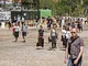 Vagtskiftet ved Marselisborg Slot skærtorsdag kl. 12 tiltrak mange fremmødte, mens politiets indsatsleder undervejs tog sig tid til at besvare spørgsmål fra en nysgerrig dreng.