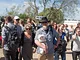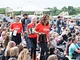 Vagtskiftet ved Marselisborg Slot skærtorsdag kl. 12 tiltrak mange fremmødte, mens politiets indsatsleder undervejs tog sig tid til at besvare spørgsmål fra en nysgerrig dreng.