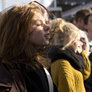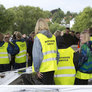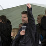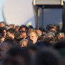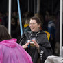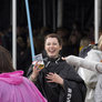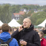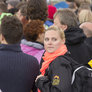 Vagtskiftet ved Marselisborg Slot skærtorsdag kl. 12 tiltrak mange fremmødte, mens politiets indsatsleder undervejs tog sig tid til at besvare spørgsmål fra en nysgerrig dreng.