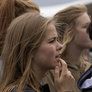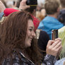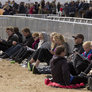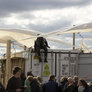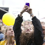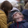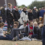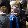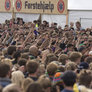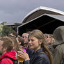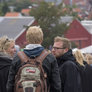 Vagtskiftet ved Marselisborg Slot skærtorsdag kl. 12 tiltrak mange fremmødte, mens politiets indsatsleder undervejs tog sig tid til at besvare spørgsmål fra en nysgerrig dreng.