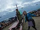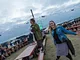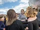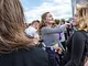 Vagtskiftet ved Marselisborg Slot skærtorsdag kl. 12 tiltrak mange fremmødte, mens politiets indsatsleder undervejs tog sig tid til at besvare spørgsmål fra en nysgerrig dreng.