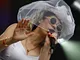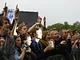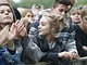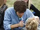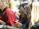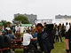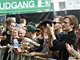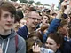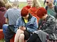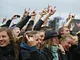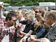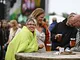 Vagtskiftet ved Marselisborg Slot skærtorsdag kl. 12 tiltrak mange fremmødte, mens politiets indsatsleder undervejs tog sig tid til at besvare spørgsmål fra en nysgerrig dreng.