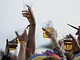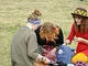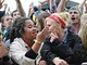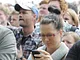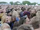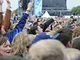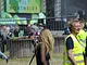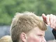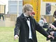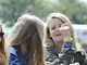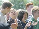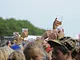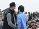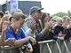 Vagtskiftet ved Marselisborg Slot skærtorsdag kl. 12 tiltrak mange fremmødte, mens politiets indsatsleder undervejs tog sig tid til at besvare spørgsmål fra en nysgerrig dreng.