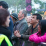 Vagtskiftet ved Marselisborg Slot skærtorsdag kl. 12 tiltrak mange fremmødte, mens politiets indsatsleder undervejs tog sig tid til at besvare spørgsmål fra en nysgerrig dreng.