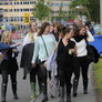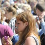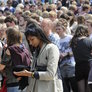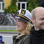Vagtskiftet ved Marselisborg Slot skærtorsdag kl. 12 tiltrak mange fremmødte, mens politiets indsatsleder undervejs tog sig tid til at besvare spørgsmål fra en nysgerrig dreng.