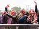 Vagtskiftet ved Marselisborg Slot skærtorsdag kl. 12 tiltrak mange fremmødte, mens politiets indsatsleder undervejs tog sig tid til at besvare spørgsmål fra en nysgerrig dreng.