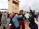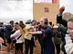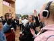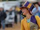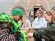 Vagtskiftet ved Marselisborg Slot skærtorsdag kl. 12 tiltrak mange fremmødte, mens politiets indsatsleder undervejs tog sig tid til at besvare spørgsmål fra en nysgerrig dreng.