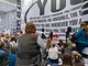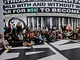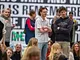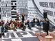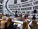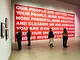 Mænd og kvinder markerede Kvindernes Kampdag, der foregik i udstillingen på ARoS "No Comment" af Barbara Kruger med oplæsning af forfatter Cecilie Lind og akustisk koncert med Soleima