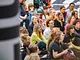 Vagtskiftet ved Marselisborg Slot skærtorsdag kl. 12 tiltrak mange fremmødte, mens politiets indsatsleder undervejs tog sig tid til at besvare spørgsmål fra en nysgerrig dreng.