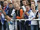 Vagtskiftet ved Marselisborg Slot skærtorsdag kl. 12 tiltrak mange fremmødte, mens politiets indsatsleder undervejs tog sig tid til at besvare spørgsmål fra en nysgerrig dreng.