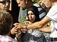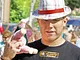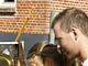 Vagtskiftet ved Marselisborg Slot skærtorsdag kl. 12 tiltrak mange fremmødte, mens politiets indsatsleder undervejs tog sig tid til at besvare spørgsmål fra en nysgerrig dreng.