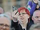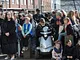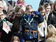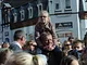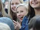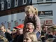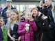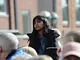 Vagtskiftet ved Marselisborg Slot skærtorsdag kl. 12 tiltrak mange fremmødte, mens politiets indsatsleder undervejs tog sig tid til at besvare spørgsmål fra en nysgerrig dreng.