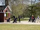 Vagtskiftet ved Marselisborg Slot skærtorsdag kl. 12 tiltrak mange fremmødte, mens politiets indsatsleder undervejs tog sig tid til at besvare spørgsmål fra en nysgerrig dreng.