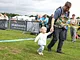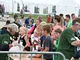 Vagtskiftet ved Marselisborg Slot skærtorsdag kl. 12 tiltrak mange fremmødte, mens politiets indsatsleder undervejs tog sig tid til at besvare spørgsmål fra en nysgerrig dreng.