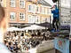 Vagtskiftet ved Marselisborg Slot skærtorsdag kl. 12 tiltrak mange fremmødte, mens politiets indsatsleder undervejs tog sig tid til at besvare spørgsmål fra en nysgerrig dreng.