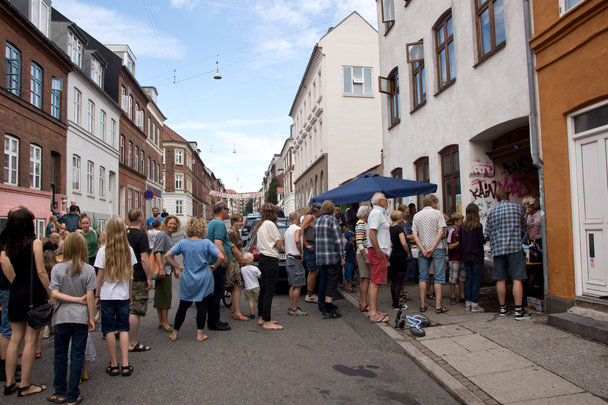 Der var for 42. gang sommerfest i øgadekvarteret. Kl.10 var der morgenmad i Sjællandsgade, imellem Thunøgade og Sølystgade. En masse glade beboere var samlet ved de opstillede borde og på trappestenene omkring. Derefter rykkede de til beboerhusets område hvor der var live musik og masser af aktiviteter for børnene. Rigtig god stemning på den varme sommerdag.
