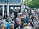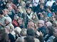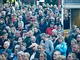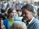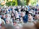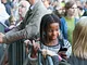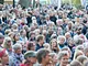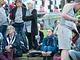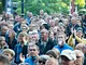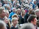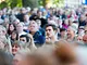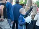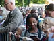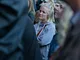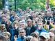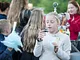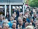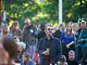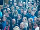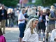 Vagtskiftet ved Marselisborg Slot skærtorsdag kl. 12 tiltrak mange fremmødte, mens politiets indsatsleder undervejs tog sig tid til at besvare spørgsmål fra en nysgerrig dreng.