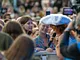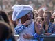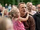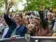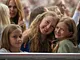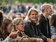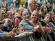 Vagtskiftet ved Marselisborg Slot skærtorsdag kl. 12 tiltrak mange fremmødte, mens politiets indsatsleder undervejs tog sig tid til at besvare spørgsmål fra en nysgerrig dreng.