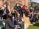 Vagtskiftet ved Marselisborg Slot skærtorsdag kl. 12 tiltrak mange fremmødte, mens politiets indsatsleder undervejs tog sig tid til at besvare spørgsmål fra en nysgerrig dreng.