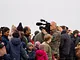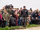 Vagtskiftet ved Marselisborg Slot skærtorsdag kl. 12 tiltrak mange fremmødte, mens politiets indsatsleder undervejs tog sig tid til at besvare spørgsmål fra en nysgerrig dreng.