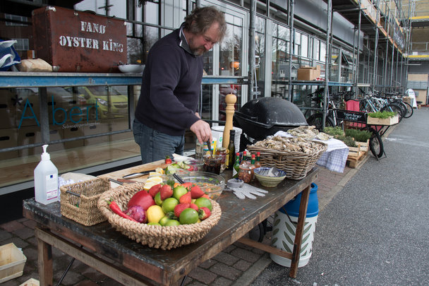 Arrangementer med drikke og mad som tema har stor interesse for tiden. Cafe Albert på Møllevangs Alle, var i dag fyldt til bristepunktet, hvor der blev smagt på øl fra Fanø Bryghus og specialiteter fra Vesterhavet som Bakskuld og grillede Østers.
