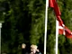 Vagtskiftet ved Marselisborg Slot skærtorsdag kl. 12 tiltrak mange fremmødte, mens politiets indsatsleder undervejs tog sig tid til at besvare spørgsmål fra en nysgerrig dreng.