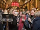 Vagtskiftet ved Marselisborg Slot skærtorsdag kl. 12 tiltrak mange fremmødte, mens politiets indsatsleder undervejs tog sig tid til at besvare spørgsmål fra en nysgerrig dreng.