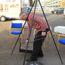 Vagtskiftet ved Marselisborg Slot skærtorsdag kl. 12 tiltrak mange fremmødte, mens politiets indsatsleder undervejs tog sig tid til at besvare spørgsmål fra en nysgerrig dreng.