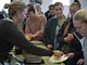 Vagtskiftet ved Marselisborg Slot skærtorsdag kl. 12 tiltrak mange fremmødte, mens politiets indsatsleder undervejs tog sig tid til at besvare spørgsmål fra en nysgerrig dreng.