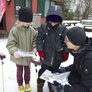 Vagtskiftet ved Marselisborg Slot skærtorsdag kl. 12 tiltrak mange fremmødte, mens politiets indsatsleder undervejs tog sig tid til at besvare spørgsmål fra en nysgerrig dreng.