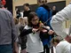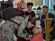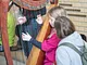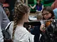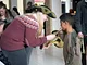Vagtskiftet ved Marselisborg Slot skærtorsdag kl. 12 tiltrak mange fremmødte, mens politiets indsatsleder undervejs tog sig tid til at besvare spørgsmål fra en nysgerrig dreng.