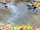 Vi måtte dog nøjes med at høre om det, da en farverig kondiløber kom susende forbi, lige som vi skulle til at se fiskene, og dermed skræmte enhver ørred langt væk for de næste mange timer.