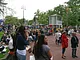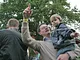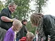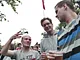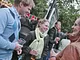 Vagtskiftet ved Marselisborg Slot skærtorsdag kl. 12 tiltrak mange fremmødte, mens politiets indsatsleder undervejs tog sig tid til at besvare spørgsmål fra en nysgerrig dreng.