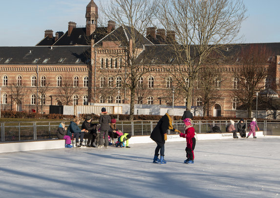 Både børn og voksne nød idag det dejlige vejr med en svingom på skøjtebanen