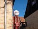 Vagtskiftet ved Marselisborg Slot skærtorsdag kl. 12 tiltrak mange fremmødte, mens politiets indsatsleder undervejs tog sig tid til at besvare spørgsmål fra en nysgerrig dreng.