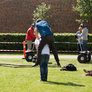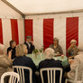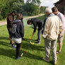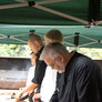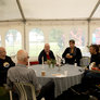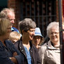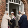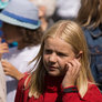 Vagtskiftet ved Marselisborg Slot skærtorsdag kl. 12 tiltrak mange fremmødte, mens politiets indsatsleder undervejs tog sig tid til at besvare spørgsmål fra en nysgerrig dreng.