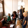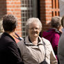 Gamle og unge mødtes i det nye frivillighus i Carl Blochs Gade. Der skal bygges bro imellem generationerne, i dag kunne de unge lære at strikke og spille krolf, de gamle at køre segway og drikke café latte.