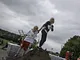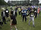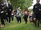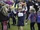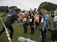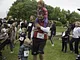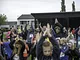 Vagtskiftet ved Marselisborg Slot skærtorsdag kl. 12 tiltrak mange fremmødte, mens politiets indsatsleder undervejs tog sig tid til at besvare spørgsmål fra en nysgerrig dreng.