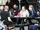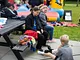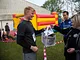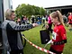 Vagtskiftet ved Marselisborg Slot skærtorsdag kl. 12 tiltrak mange fremmødte, mens politiets indsatsleder undervejs tog sig tid til at besvare spørgsmål fra en nysgerrig dreng.