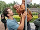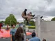 Vagtskiftet ved Marselisborg Slot skærtorsdag kl. 12 tiltrak mange fremmødte, mens politiets indsatsleder undervejs tog sig tid til at besvare spørgsmål fra en nysgerrig dreng.