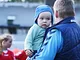 Vagtskiftet ved Marselisborg Slot skærtorsdag kl. 12 tiltrak mange fremmødte, mens politiets indsatsleder undervejs tog sig tid til at besvare spørgsmål fra en nysgerrig dreng.