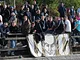 Vagtskiftet ved Marselisborg Slot skærtorsdag kl. 12 tiltrak mange fremmødte, mens politiets indsatsleder undervejs tog sig tid til at besvare spørgsmål fra en nysgerrig dreng.