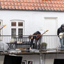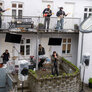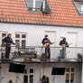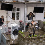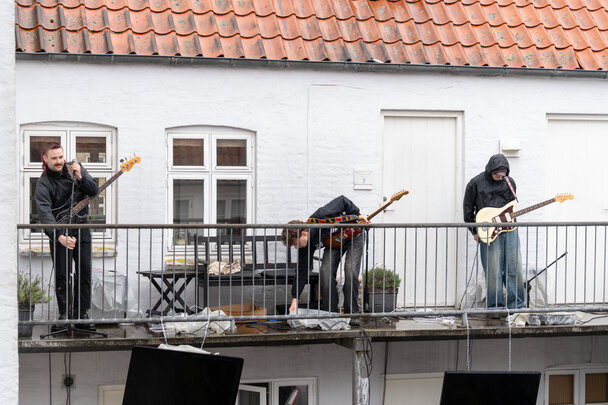 TELUS - et post-punk band havde fået den ide at lave koncert i baggården i Århus, hvor de bor mens der var spotfestival om lørdagen. Genialt med musik på flere etager.