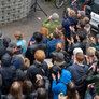 Vagtskiftet ved Marselisborg Slot skærtorsdag kl. 12 tiltrak mange fremmødte, mens politiets indsatsleder undervejs tog sig tid til at besvare spørgsmål fra en nysgerrig dreng.