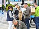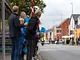 Vagtskiftet ved Marselisborg Slot skærtorsdag kl. 12 tiltrak mange fremmødte, mens politiets indsatsleder undervejs tog sig tid til at besvare spørgsmål fra en nysgerrig dreng.